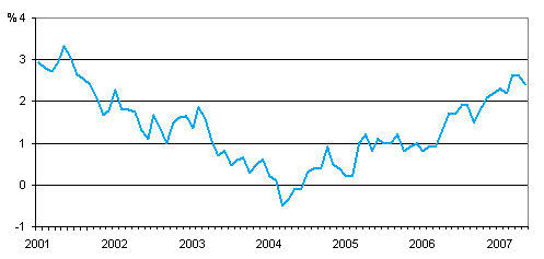 Kuluttajahintojen vuosimuutos 1/2001 - 5/2007
