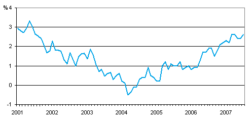 Year-on-year change in consumer prices 1/2001 - 7/2007