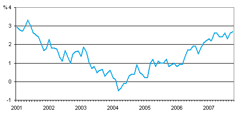 Förändringen av konsumentpriserna på årsnivå 1/2001-10/2007