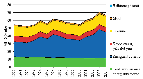 Energiasektorin päästötrendi 1990-2004 (Mt CO2 ekv.)