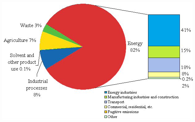 Figure 1: Greenhouse gas emissions by sectors in 2006 (%)
