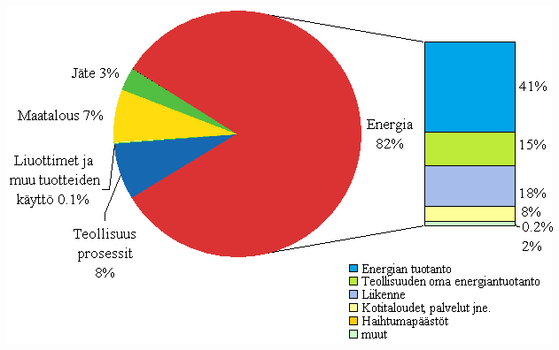 Kuva 1. Kasvihuonekaasupäästöt sektoreittain v. 2006 (%)