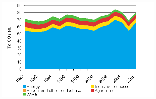 Figure 2: Greenhouse gas emissions in 1990 - 2006 (Tg CO2 eq.)