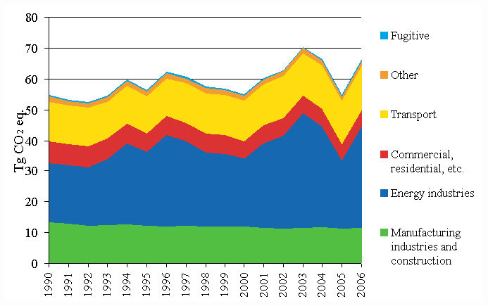 Figure 3: Development of emissions in the Energy sector in 1990 - 2006 (Tg CO2 eq.)