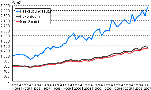 Omakotitalojen keskimääräiset neliöhinnat 1. neljännes 1994 - 2. neljännes 2007