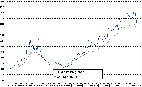 Källa: Prisindex för fastigheter, 1:a kvartalet 2009. Statistikcentralen