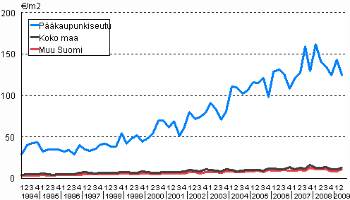 Omakotitalotonttien keskineliöhinnat 1. neljännes 1994 - 2. neljännes 2009