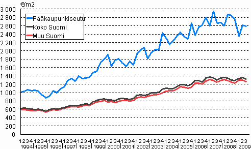 Omakotitalojen keskimääräiset neliöhinnat 1. neljännes 1994 - 3. neljännes 2009