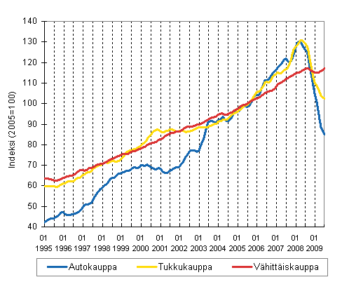 Auto-, tukku- ja vähittäiskaupan liikevaihdon trendisarjat (TOL 2008)