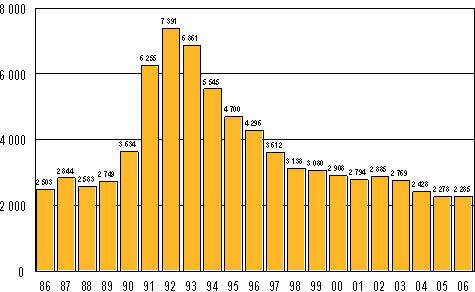 Vuoden 2006 aikana pantiin vireille 2 285 konkurssia, mikä on vain seitsemän enemmän kuin vuotta aiemmin. Henkilökunnan määrä konkurssiin haetuissa yrityksissä oli kaikkiaan 8 717, mikä on noin 1 200 vähemmän kuin edellisenä vuonna.