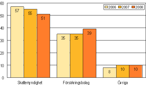 Konkurser som anhängiggjorts av borgenären efter konkurssökande 2006-2008, %