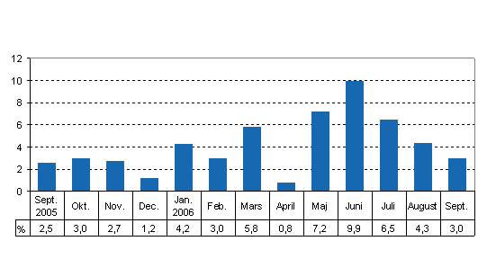 Totalproduktionen var 3,0 procent större än i september år 2005