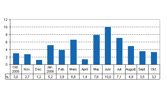 Totalproduktionen var 3,3 procent större än i oktober år 2005