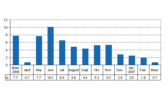 Totalproduktionen var 0,7 procent större än i mars år 2006