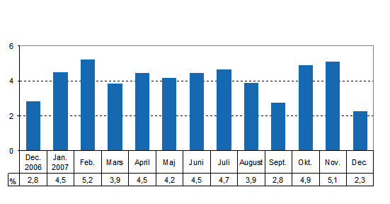 Totalproduktionen var 2,3 procent större än i december år 2006