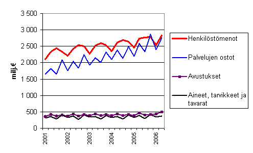 Kuntien toimintamenoja neljänneksittäin
