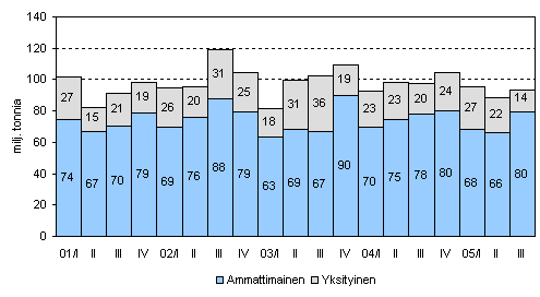 Tavaramäärä, miljoonaa tonnia