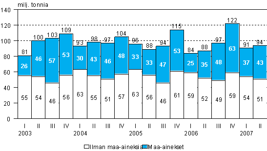 - Tavaramäärä, miljoonaa tonnia (17.8.2007)