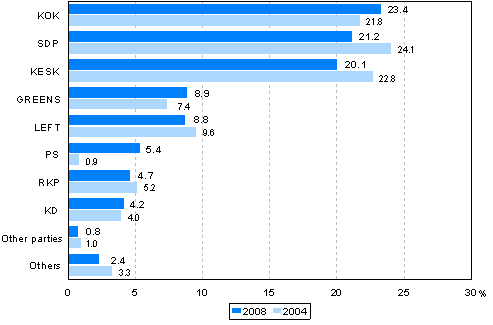 Source: Election Statistics, Municipal elections 2008. Statistics Finland