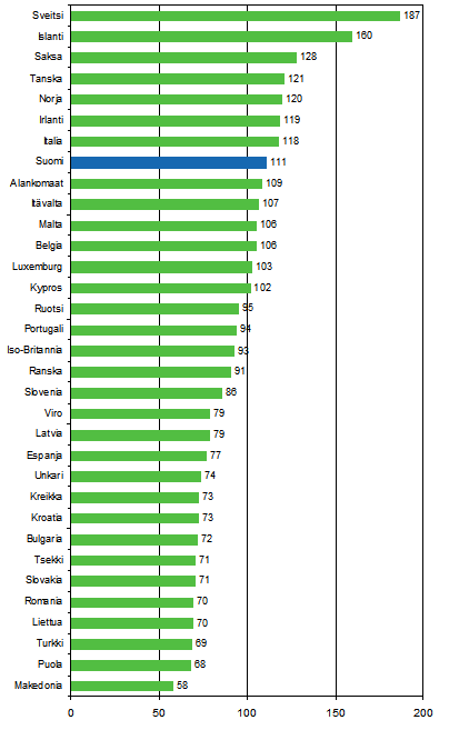 Lähde: Eurostat; Kansainvälinen hintavertailu, Tilastokeskus