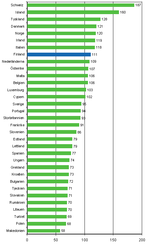 Källa: Eurostat: Internationell prisjämförelse, Statistikcentralen