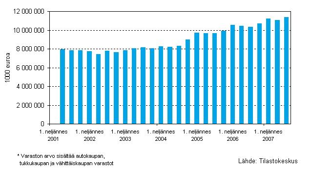 Kaupan varastojen kehitys II/2001 - III/2007