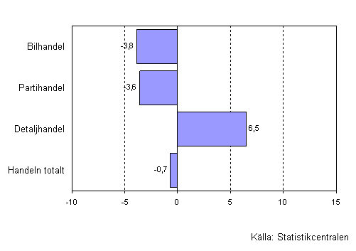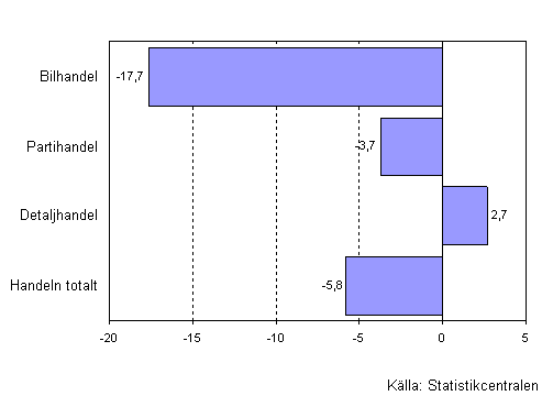 Inom bilhandeln minskade lagren under första kvartalet 2009 med 3,8 procent och värdet av lagren inom partihandeln med 3,6 procent från motsvarande period året innan. Inom detaljhandeln däremot ökade värdet av lagren under motsvarande period med 6,5