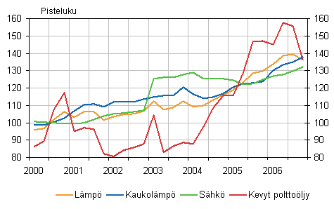 Vertailtaessa kiinteistön ylläpidon kustannusindeksiä, rakennuskustannusindeksiä ja kuluttajahintaindeksiä, on kiinteistön ylläpidon kustannusindeksi noussut selvästi muita enemmän viimeisen kolmen vuoden aikana. Tämä johtuu erityisesti lämmityskustannusten noususta, jossa kevyen polttoöljyn hinta on lähes kaksinkertaistunut aina vuoden 2006 kolmanteen neljännekseen saakka. Myös muut kustannuslajit ovat nousseet kiinteistön ylläpidon kustannusindeksissä enemmän kuin rakennuskustannusindeksissä ja kuluttajahintaindeksissä.