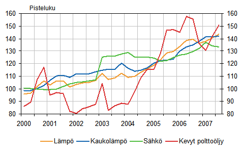 Kustannuslajeittain tarkasteltuna vuodessa nousivat eniten muiden kustannusten ja kaukolämmön kustannukset. Vuoden aikana lämpökustannuksista kaukolämmön hinta nousi 5,2 prosenttia kun taas kevyen polttoöljyn hinta laski 3,0 prosenttia.