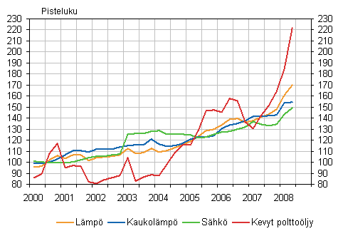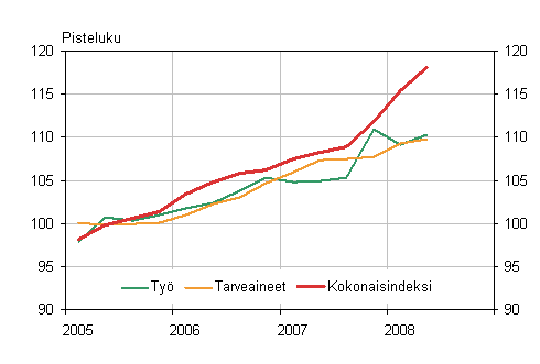 Kiinteistön ylläpidon kustannusindeksi on noussut rakennuskustannusindeksiin ja kuluttajahintaindeksiin verrattuna huomattavasti rivakammin vuoden 2007 loppupuolelta lähtien. Rakennuskustannusindeksin kasvuvauhti on jo pidemmän aikaan ollut tasaista, sitä vastoin kuluttajahintaindeksin kasvuvauhti on viime aikoina hieman kiihtynyt. Kiinteistön ylläpidon kustannusindeksin voimakkaaseen kasvuun on vaikuttanut erityisesti lämpökustannukset.