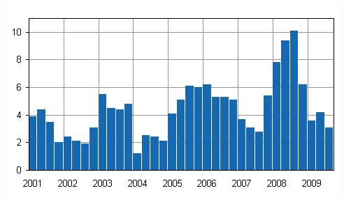 ISSN=1799-4322. 3:e kvartalet 2009. Helsingfors: Statistikcentralen [hänvisat: 31.3.2026].