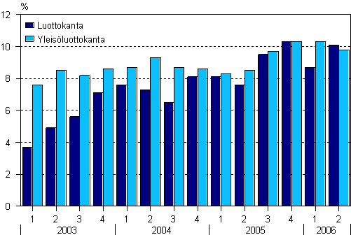 Lähde: Luottokanta, 2. neljännes 2006. Tilastokeskus