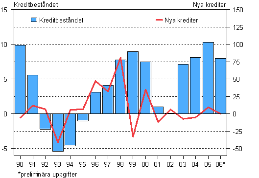 Källa: Kreditbeståndet 2006, 4:e kvartalet, preliminära uppgifter. Statistikcentralen