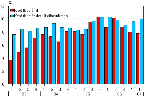Källa: Kreditbeståndet, 1:a kvartalet 2007. Statistikcentralen