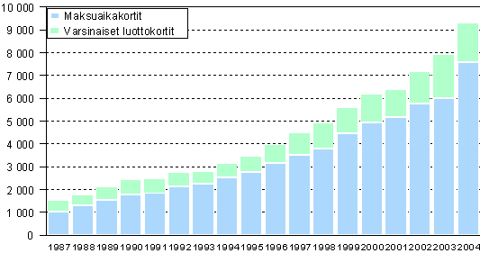 - Luotto- ja pankkikorttiostojen lukumäärät vuosina 1995- 2004 (20.6.2005)