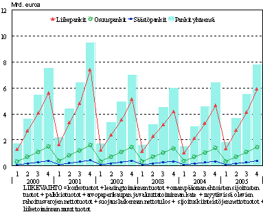 Kotimaisten pankkien liikevaihto neljännesvuosittain vuosina 2000-2005
