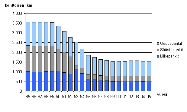 Kotimaisten pankkien konttorit vuosien 1985-2005 lopussa
