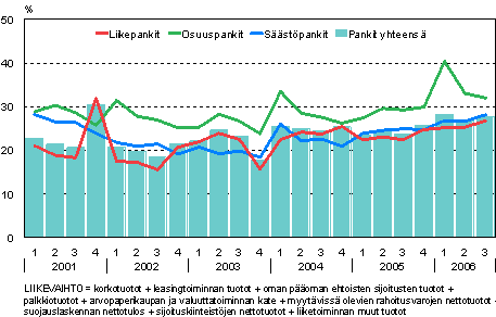 Kotimaisten pankkien liikevaihto oli vuoden 2006 tammi-syyskuussa yhteensä 7 430 milj. euroa eli 35 prosenttia enemmän kuin edellisvuoden vastaavalla ajanjaksolla. Pankkien liikevoitto kasvoi kolmella ensimmäisellä neljänneksellä 57 prosenttia edellisen vuoden vastaavasta jaksosta ja oli 2 053 milj. euroa.