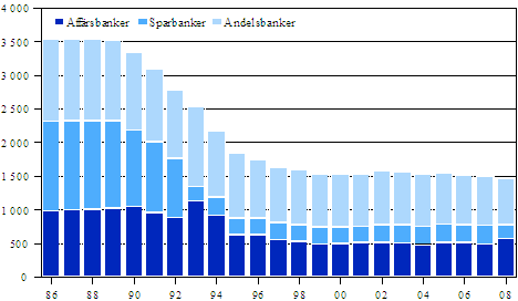 Källa: Kreditinstitutens resultat- och balansräkningar 1.1-31.12.2008, Monetära finansinstitut 2008. Statistikcentralen