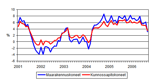 Perinteisten maarakennuskoneiden ja kunnossapitokoneiden kustannusten vuosimuutokset 1/2001 - 9/2006