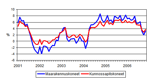 Perinteisten maarakennuskoneiden ja kunnossapitokoneiden kustannusten vuosimuutokset 1/2001 - 11/2006