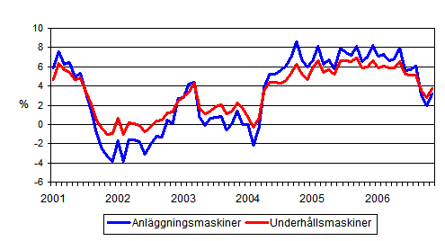 Årsförändringar av kostnaderna för traditionella anläggningsmaskiner och underhållsmaskiner 1/2001 - 11/2006