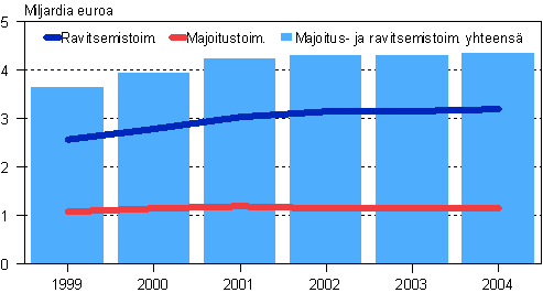 Majoitus- ja ravitsemistoiminnassa oli 10 000 yritystä vuonna 2004. Vaikka yritysten lukumäärä väheni noin 100 yrityksellä ja henkilöstön lukumäärä runsaalla 1 500 henkilöllä, kertyi liikevaihtoa 41 miljoonaa euroa edellisvuotista enemmän. Yritykset keräsivät liikevaihtoa 4,4 miljardia euroa ja työllistivät 48 400 henkilöä. Jalostusarvoa majoitus- ja ravitsemistoiminnassa kertyi 1,6 miljardia euroa, mikä oli 23 miljoonaa euroa enemmän kuin vuotta aiemmin. Henkilöä kohden laskettuna jalostusarvoa kertyi 33 700 euroa.