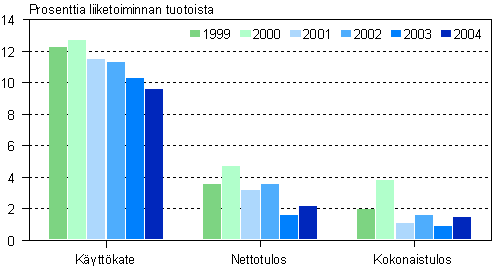 Vuodesta 2000 lähtien majoitus- ja ravitsemistoiminnan kannattavuuden tunnusluvut ovat hieman heikentyneet, kunnes ne vuonna 2004 kääntyivät hienoiseen nousuun. Varsinaisen toiminnan kuluihin hupeni noin 92 prosenttia liiketoiminnan tuotoista, jolloin käyttökatetta jäi 7,9 prosenttia eli 351 miljoonaa euroa. Tilikauden tulosta, joka oli 3,7 prosenttia tuotoista, kertyi 163 miljoonaa euroa. Voittoa kertyi 19 miljoonaa euroa edellisvuotista enemmän.