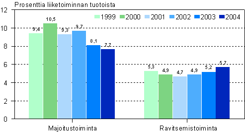 Vuodesta 2000 lähtien majoitus- ja ravitsemistoiminnan kannattavuuden tunnusluvut ovat hieman heikentyneet, kunnes ne vuonna 2004 kääntyivät hienoiseen nousuun. Toimintakulut lohkaisivat noin 92 prosenttia liiketoiminnan tuotoista, jolloin käyttökatetta jäi 7,9 prosenttia eli 351 miljoonaa euroa. Voittoa, joka oli 3,7 prosenttia tuotoista, kertyi 163 miljoonaa euroa.