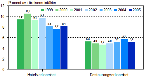 Finansieringsresultatet inom hotell- och restaurangverksamhet 1999-2005