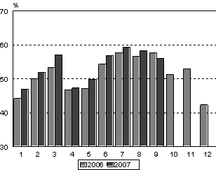 ulkomaisten matkailijoiden ryhmä tammi-syyskuussa 2007. Heidän
