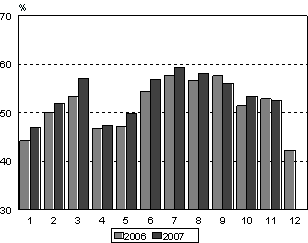 ulkomaisten matkailijoiden ryhmä tammi-marraskuussa 2007. Heidän
