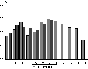 Venäläisten yöpymisten voimakas kasvu on jatkunut koko kuluvan vuoden ja he olivatkin ylivoimaisesti suurin ulkomaisten matkailijoiden ryhmä tammi-heinäkuussa 2008. Heidän yöpymisensä lisääntyivät 21 prosenttia viime vuodesta ja niitä kirjattiin Suomen majoitusliikkeissä 626 000 yöpymisvuorokautta. Yli 300 000 yöpymisvuorokautta tilastoitiin saksalaisille, ruotsalaisille ja briteille. Brittien yöpymiset lisääntyivät 19 prosenttia ja saksalaisten yöpymiset vajaat 3 prosenttia. Sitä vastoin ruotsalaisten yöpymiset vähenivät niukasti, 2 prosenttia.