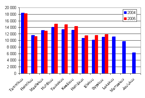 Lähde: Ensirekisteröintitilastot 2005. Tilastokeskus, AKE